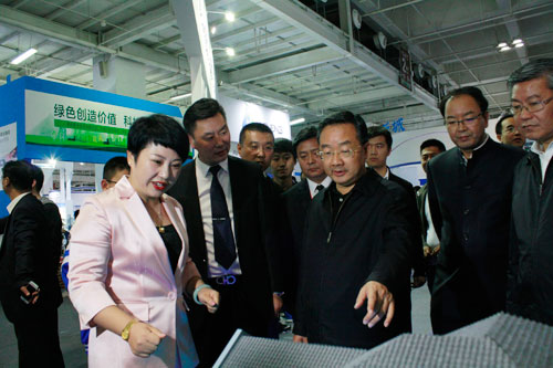 9月17日,甘肅省委副書記、省長唐仁健,省委常委、蘭州市委書記李榮燦,副省長張世珍一行,蒞臨華能生態能源展區進行調研考察。在總裁金于熙女士的陪同下參觀了我公司展區。總裁金于熙向唐仁健省長等領導詳細介紹了公司發展歷程和前景規劃,重點介紹了華能微排建筑打造的“地球公社”品牌。