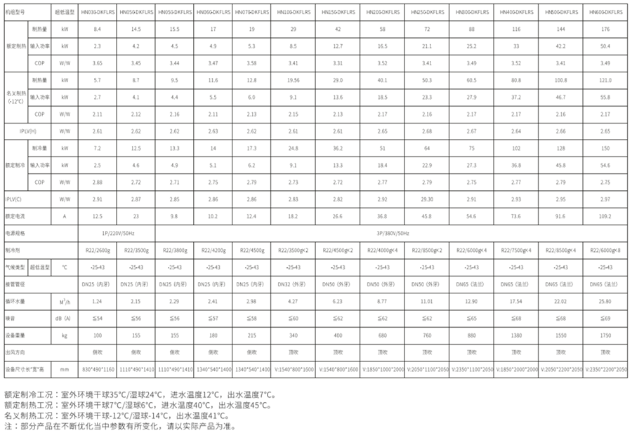 超低溫采暖冷熱水機組參數(shù):