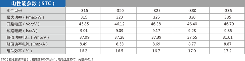 多晶335W單玻組件315~335W